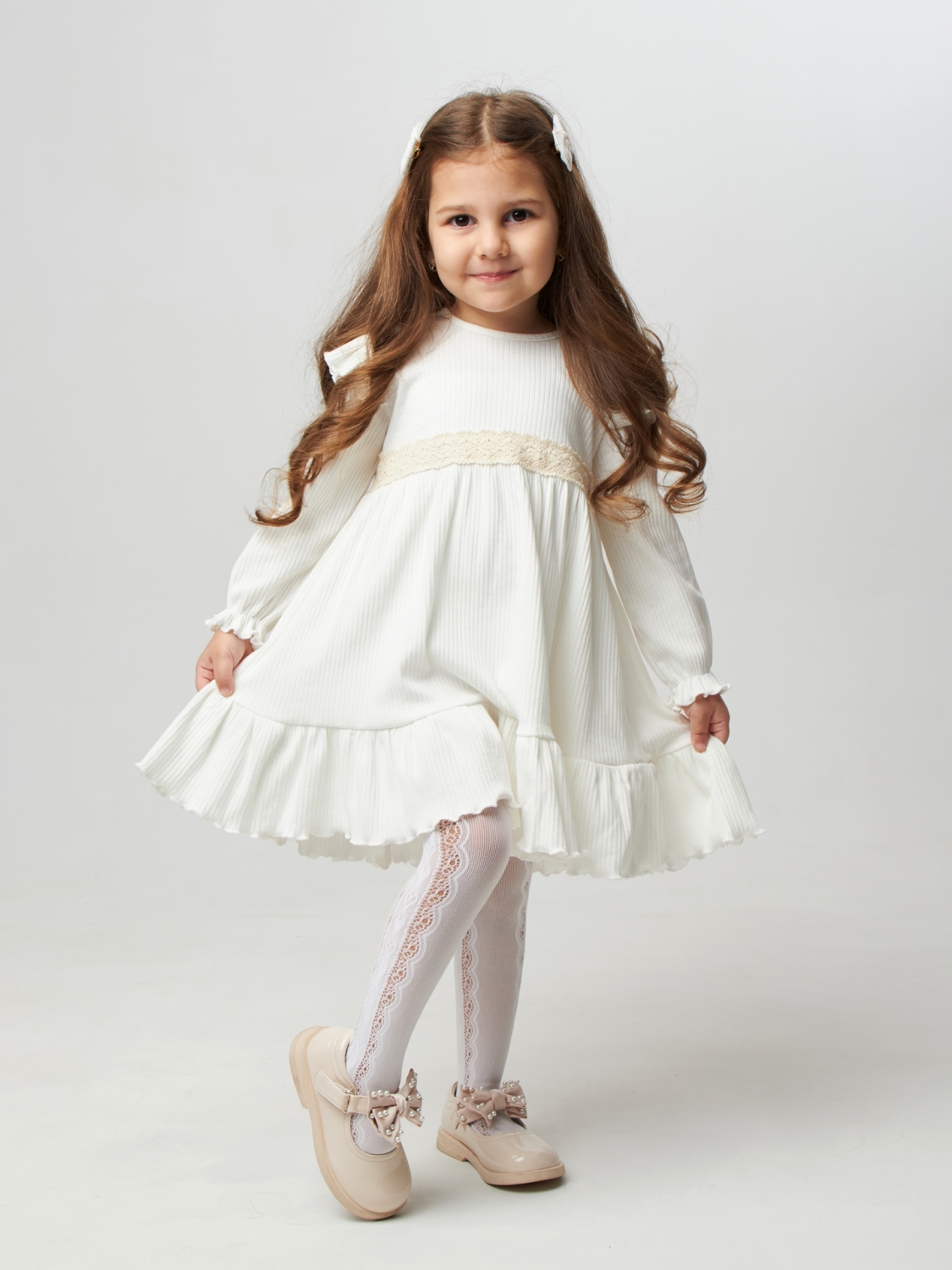 Теги: Платья детские из мулина оптом. 332. Платье детское из лапши, хлопок 100%, молочное, р. 74,80,86,92 цена,отзывы официальный сайт "Стеша Курган"
